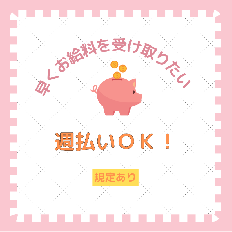 | 待遇・福利厚生 | ・各種社会保険完備・交通費支給・有給休暇制度(入社6カ月後10日付与/規定あり)・マイカー通勤OK・現地面接OK・喫煙環境;禁煙・分煙(就業先による)・無料駐車場あり・週払い制度あり(規定あり)・定期健康診断・毎月、特別手当支給(会社規定あり)・退職金制度(規定あり) |